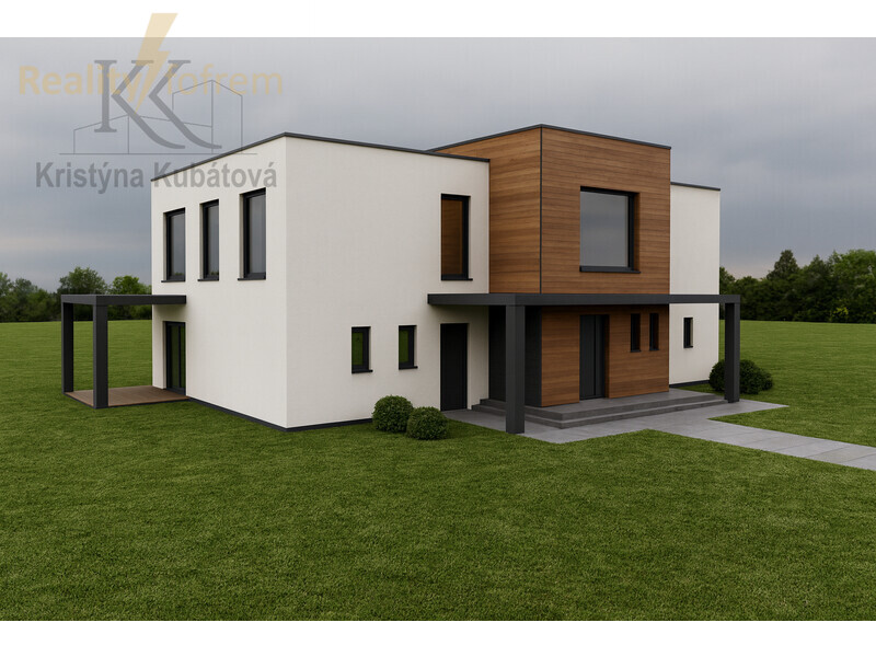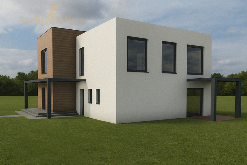 Dům je navržen jako dvoupodlažní objekt s moderním architektonickým